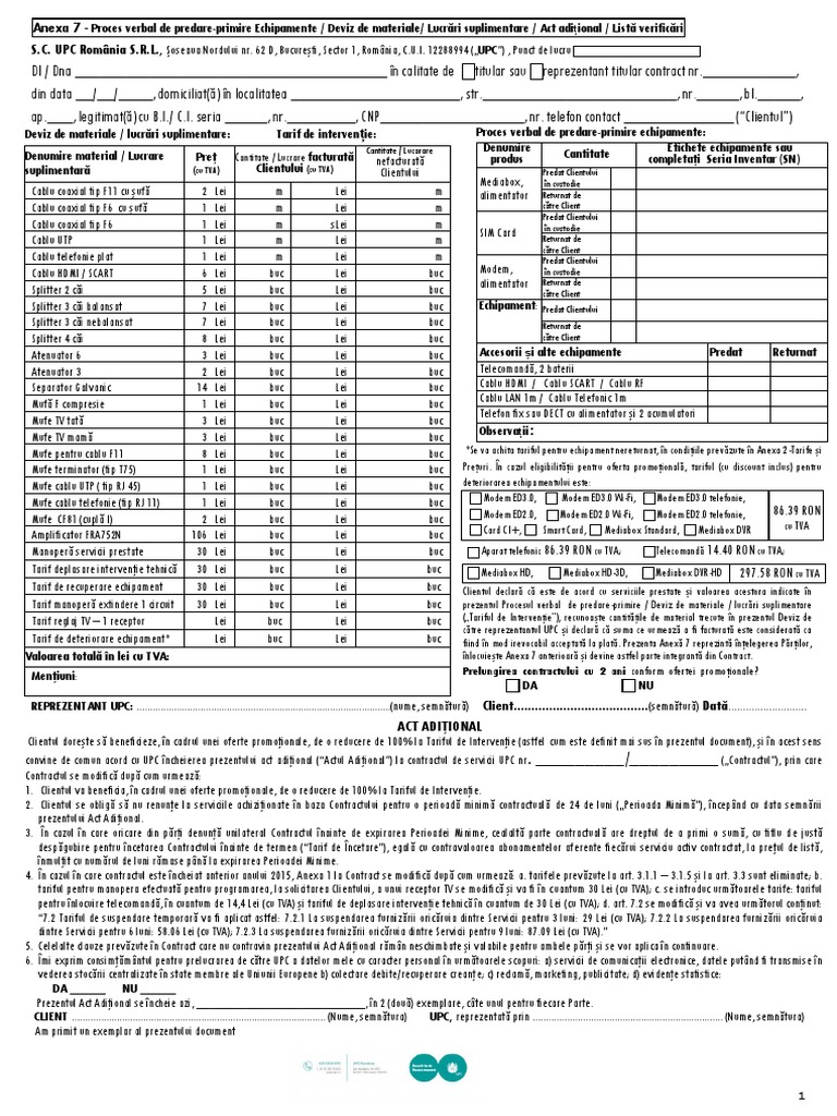 In cadrul devizului se pot inregistra, pe prima pagina date privind clientul, locatia lucrarii, echipa de lucru, cota de aprovizionare,valoarea regiilor. Acest tip de model deviz este realizat in concordanta cu prevederile legale in vigoare.